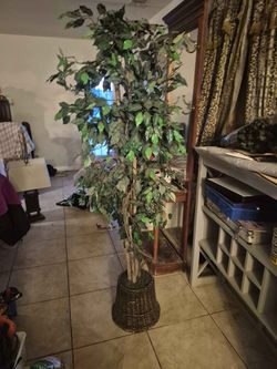 artificial ficus tree in a wicker basket planter. $10Hesperia, CA