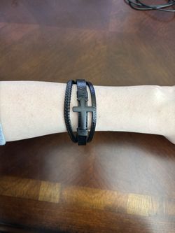 Black Ion Plated Stainless Steel Cross Triple Strand Leather Bracelet $25Aurora, CO