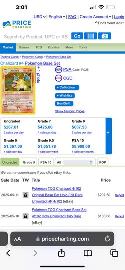Pokémon TCG Charizard 4/102 Original Base Set Holo Foil Rare Unlimited HP 4/102$275Gainesville, FL