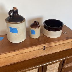 Various Stoneware Crocks, Whiskey Jug, Briwn And Cream $200Seattle, WA