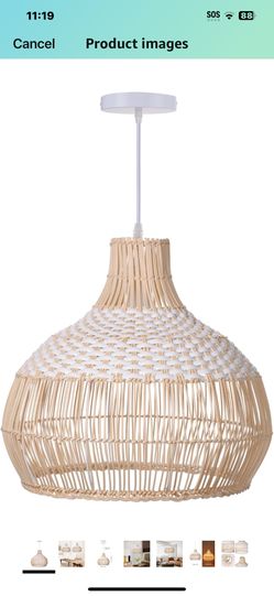 Arturesthome 13.7" White Rattan Pendant Light, Farmhouse Coastal Wicker Hanging Ceiling Light Chandelier, Handmade Woven Lampshade for Kitchen Island$15Las Vegas, NV