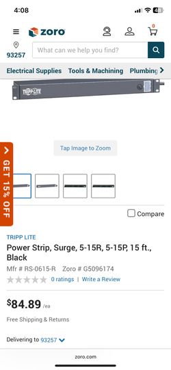 Power Strip, Surge, 5-15R, 5-15P, 15 ft., Black$30Porterville, CA