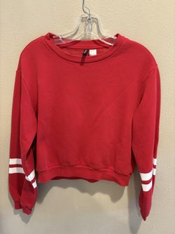 H&M Red Sweatshirt with White Striped Sleeves$10Three Rivers, Oregon