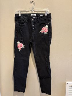 Elegant Black Skinny Jeans with Floral Embroidery$10Three Rivers, Oregon