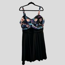 BloomChic Women’s Swim Dress 22-24 Black Pink Purple Floral Swimsuit