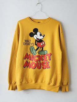 Vintage Disney Mickey Mouse Mustard Yellow Crewneck Sweatshirt - Bold Graphic 90s Classic!$10Tempe, AZ