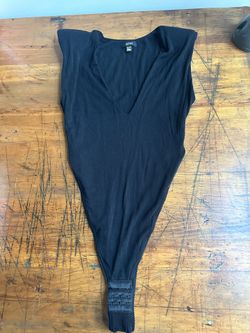 AFRM Black Ribbed V-neck Bodysuit with Shoulder Pads Size Extra Small$20New York, NY