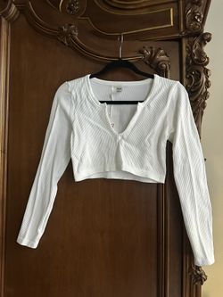 Aritzia Sunday Best White Ribbed Sinch Seamless V-Neck Long Sleeve Crop Top size Medium NEW $35New York, NY