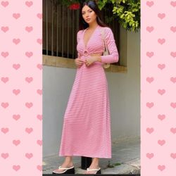 AFRM Harlee Cutout Waist Long Sleeve Dress in Pink Stripe Size Small$25New York, NY