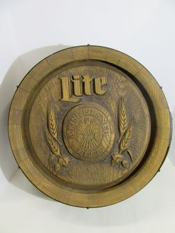 Share Miller Lite A FINE PILSNER BEER Barrel End Round Sign 18" x 61/4" Deep Vintage$40Irving, TX