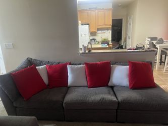 Gray Couch w/ Red & White Pillows + Ottoman $125Durham, NC