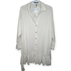 ZARA Linen Blend White Dress Wood Button Down Front Collared Neck$35Seattle, WA