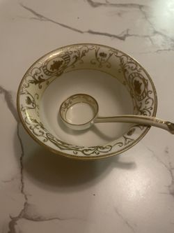 Vintage Gold Gilt Porcelain Cream Soup Bowl w/ Ladle – Elegant Floral Pattern – Japan Style $28Carrboro, NC
