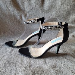 Blue by Betsey Johnson Drew Black Satin Rhinestone Ankle Strap Heels size 10$90Oakland, CA