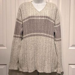 Roots Cream Taupe Cotton V-Neck Long Sleeve Sweater Size M$68Wolcott, CT