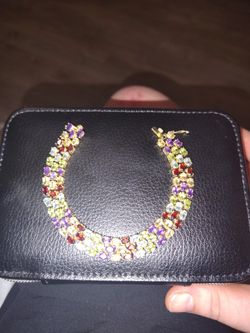 925 Multicolor Gemstones Gold Tone Tennis Bracelet $50Portland, OR