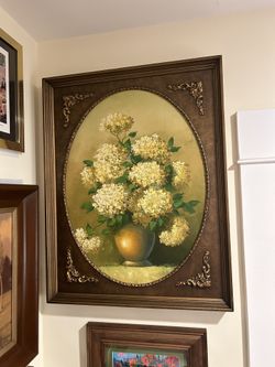 Original Vintage Oil Painting of Hydrangeas in Vase – Custom Framed Floral Still - 21.5” x 27.5”$175Torrance, CA