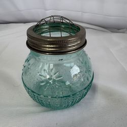 Vintage 2003 ASP Hobnail Aqua Glass Flower Vase with Wire Flower Frog Lid 3.5 “ High$10Rowland Heights, CA