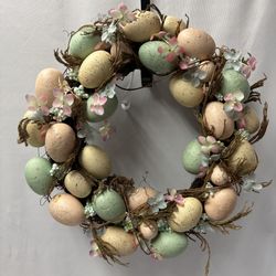Easter Pastel Eggs and Cloth Flowers 14” Wreath$8Rowland Heights, CA