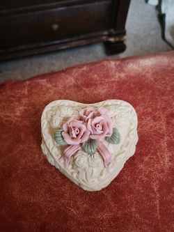 Porcelain Or Ceramic Heart Shaped Jewelry Box With Roses On Tip 3.5 In H X 4in W$15Davis, OK