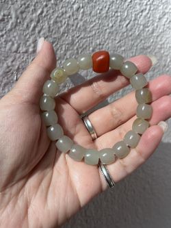 8mm Natural Hetian Jade Seed Material Bracelet with Nanhong agate bead$158Castro Valley, CA