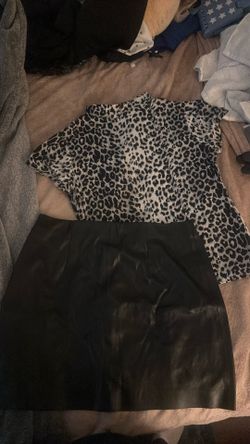 LEATHER SKIRT WITH CHEETAH SILK TOP.$10Stockton, CA