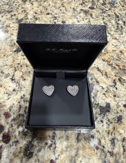 Macys Fine Jewelry Diamond Heart Earrings 1/4CT Sterling Silver New In Box With tags$50Temecula, CA