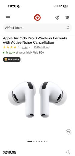 Apple AirPods Pro 3 Wireless Earbuds with Active Noise Cancellation$220Milwaukee, WI