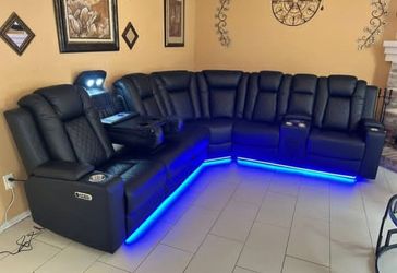 Luxury Reclining Sectional Sofa with LED Lighting | Cup Holders + Console | New $50Miami, FL