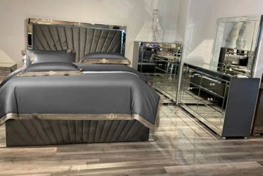 🔥 Luxury Grey Queen Size Bedroom with Mirrors ✨ Total Elegance $50Miami, FL