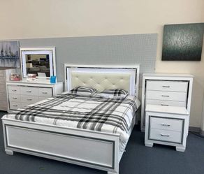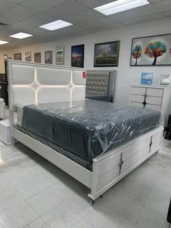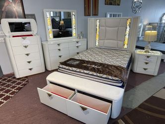 Luxury White Queen Size Bedroom Set with LED Lights and Drawers – New $50Miami, FL