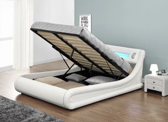 Bed Queen Size SPEAKERS LED Lights Storage White Bed with Bluetooth . Preguntar Precio $50Miami, FL