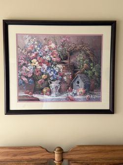 Professionally Framed Flowers with Birdhouse print 36”x30”$40Hadley, KY