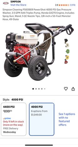4000 PSI HONDA/SIMPSON GAS POWER WASHER$649St. Petersburg, FL