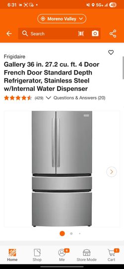 Frigidaire Gallery 36 in. 27.2 cu. ft. 4 Door French Door Standard Depth Refrigerator, Stainless Steel w/Internal Water Dispenser$1,150Anaheim, CA
