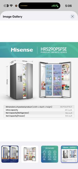 Hisense 29.1-cu ft Standard-Depth 36-in Wide Side-by-Side Refrigerator with Ice Maker Water and Ice Dispen$800Anaheim, CA