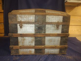 Large Tin Wood Antique Trunk With Roll Wheels $150Greensboro, NC
