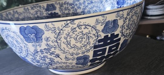 Vintage Style Blue & White Porcelain 14x9" Centerpiece Bowl, Three Hands Corp. $175Riverside, CA