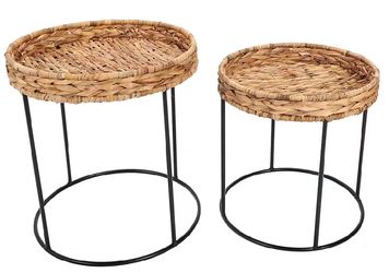 Rattan Nesting End Table Set of 2, Hand-Woven Boho Side Tables with Wicker Tray Top and Metal Stand,Small Round Nesting Coffee Table for Living Room,B$20El Monte, CA