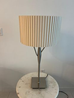 Modern Floor Lamp with Wood Slat Shade – Brushed Metal Base$89Pembroke Pines, FL