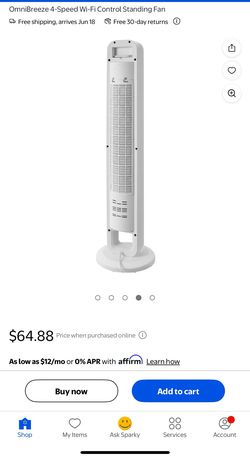 Omnibreeze Oscillating Tower Fan with Digital Display – White | Excellent Condition!$60Coffeyville, KS