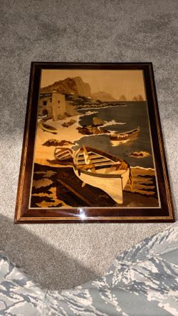 Handcrafted Wood Marquetry Coastal Boat Scene Wall Art – Framed Nautical Decor$50Scottsdale, AZ