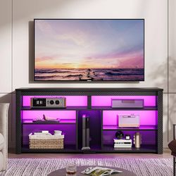 Bestier LED Tall TV Stand, Entertainment Center for 55/60/65 Inch TV, Gaming TV Console with Storage for PS4, Adjustable Shelf TV Cabinet for Living R$80Fullerton, CA
