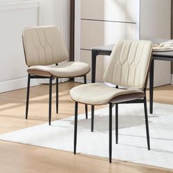 BV Mid Century Modern Dining Chairs Set of 2, Upholstered Pu Leather Accent Chair with Walnut Bentwood Back, Armless Kitchen Retro Chair for Dining Ro$120Fullerton, CA