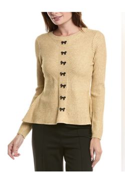 Nanette Nanette Lepore Ribbed Peplum Sweater Tan Metal Bow Buttons Size XL (Fits L-XL)$40Nampa, ID