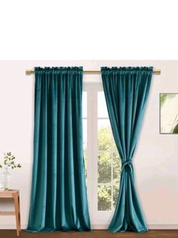 Teal Velvet Rod Pocket Oanels Silky Touch Thick Fabric Misern Curtains $65Pontotoc, MS