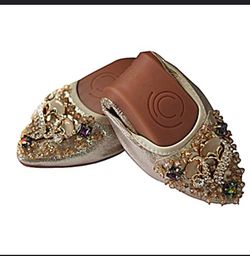 gold, rhinestone-embellished ballet flats or dress shoes, likely intended for special occasions or formal wear.$20White Oak, MD