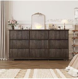 Fluted 9 Drawers Dresser for Bedroom, 63" Wood Dresser with Power Outlet and Deep Drawers, Wide Chest of Drawers, $170$170Dunwoody, GA