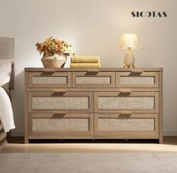 SICOTAS 7 Drawer Dresser for Bedroom, 57" Wide Rattan Dressers dark oak $190$190Dunwoody, GA