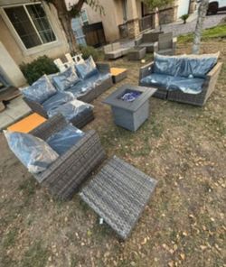 High Quality Fully Assembled In The Box Patio Furniture Set Deep Seating Cushions Fire Pit Propane Top Quality 🆕🆕$900Irwindale, CA